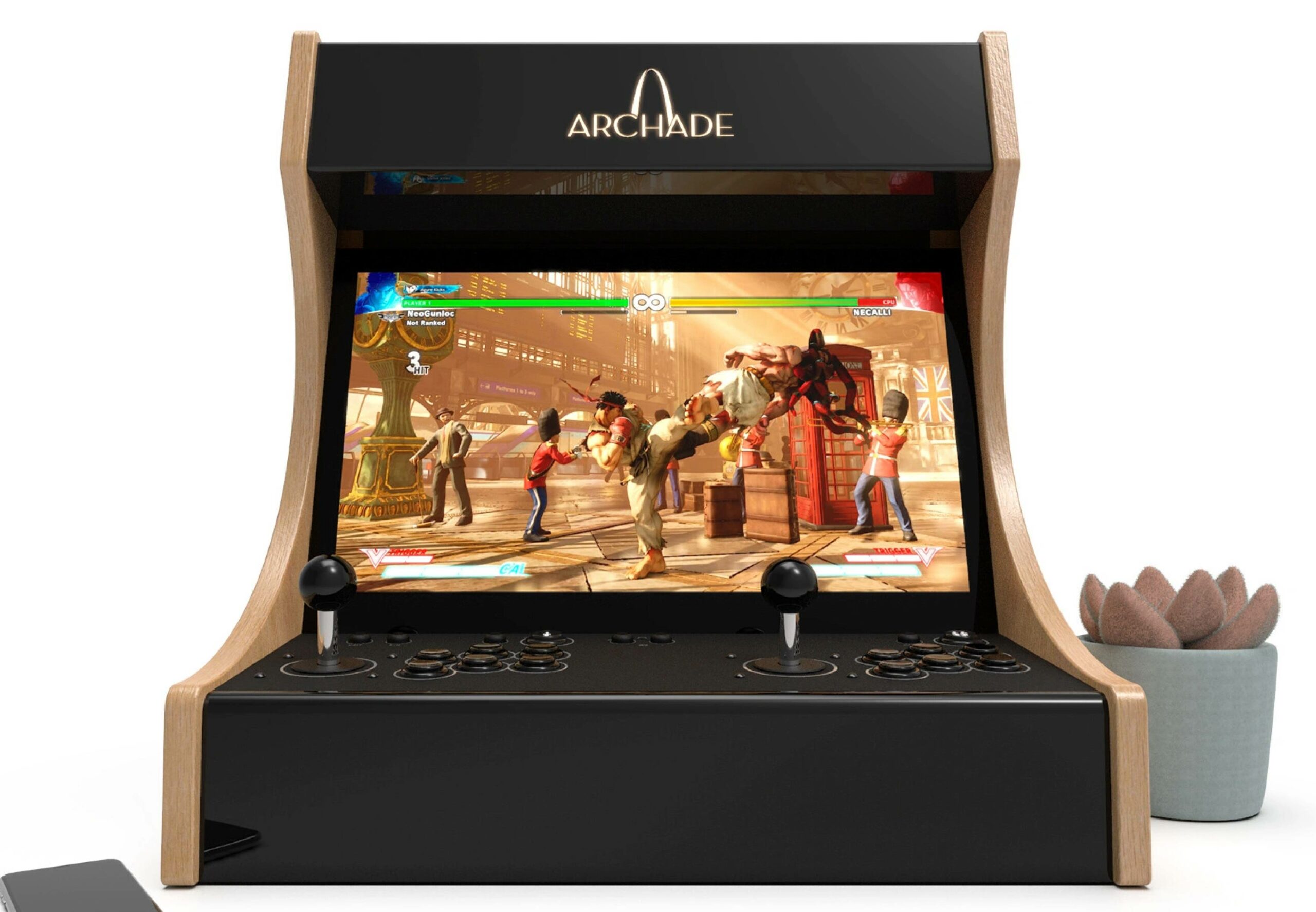 Es posible modificar el tamaño de la pantalla hasta un máximo de 19" así como los joysticks, muy recomendados los "semiprofesionales" por su excelente calidad en la jugabilidad y su robustez. Consultar.